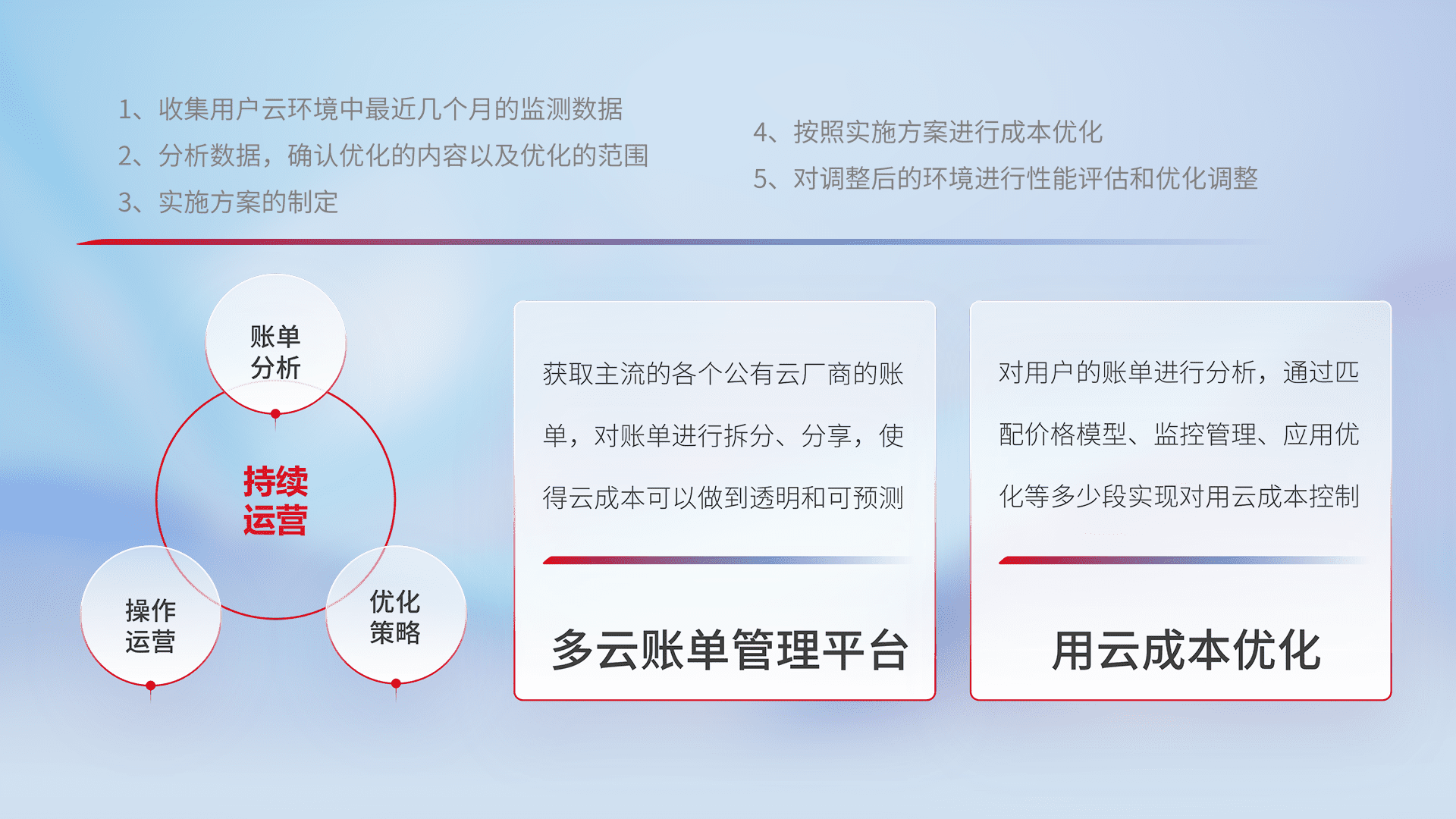 监控业务系统资源开销,,,,对资源的消耗精确计量,,实现费用的透明化管理,,,,不断提升资源使用率,,,调整资源购买方式,,,,降低资源费用成本,,,用云成本可预测、、、、用云费用可优化,,,,云资源配额有据可依。。。
